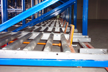 該型貨架采用重力式輥筒輸送機作為貨架的主要部件,物品通過輥道自動從末端移動到前端,配合自動堆垛機,升降臺或高位叉車作業,具有品種區別明顯、物品先進先出、空間利用率高等顯著優點。